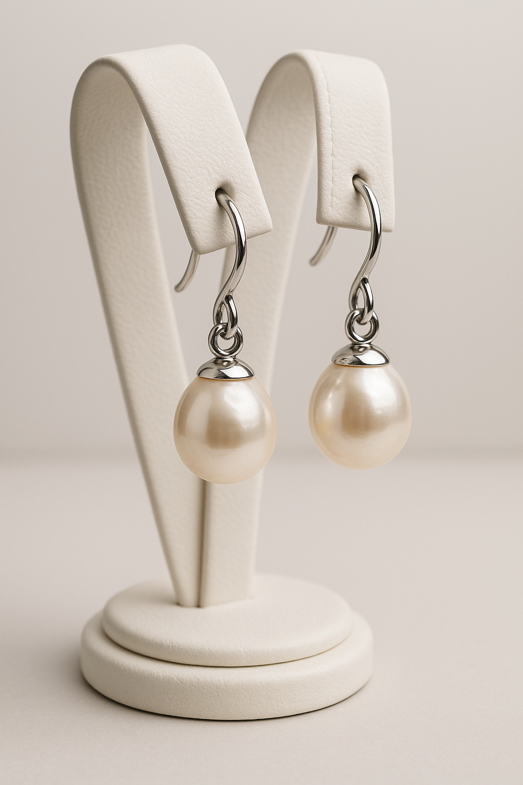 Ohrhänger aus 925/- Silber mit einer weißen, runden Süßwasserperle.